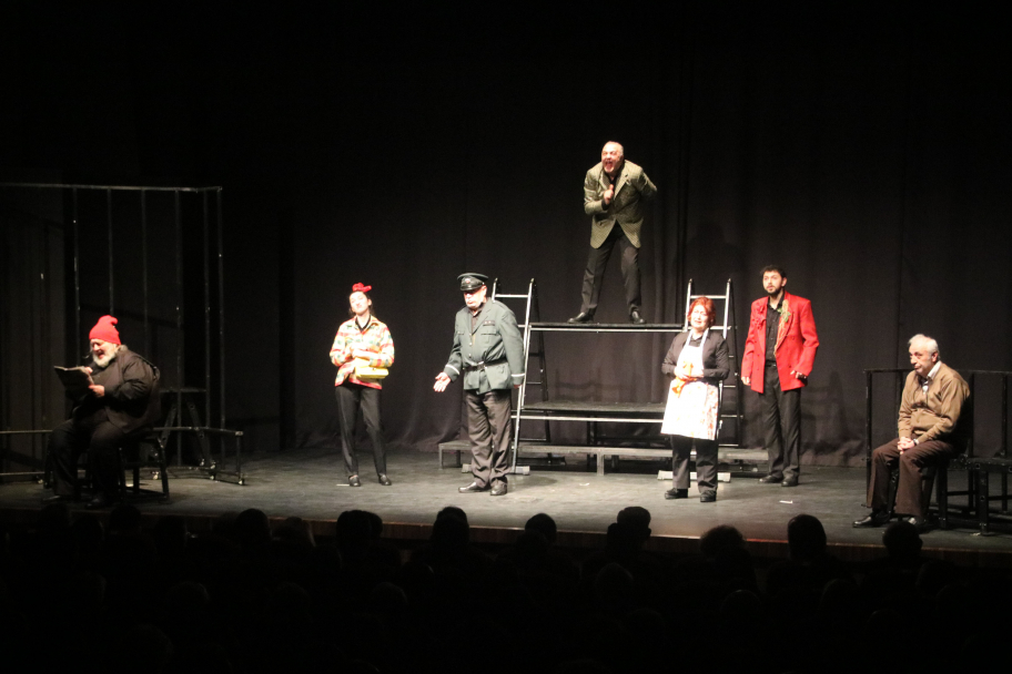 Ankara Ekin Tiyatrosu oyuncuları tarafından sahnelenen Aziz Nesin'in hayatının ve dünya görüşünün anlatıldığı "Memleketin Kısmeti" oyunu izleyenlerden büyük beğeni topladı.