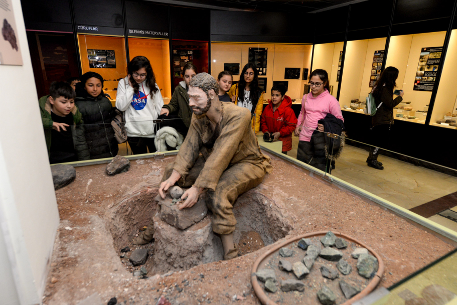 MTA Tabiat Tarihi Müzesi’nde uzaya yolculuk yapan, güneş sistemindeki gezegenleri yakından tanıyan, tek hücreli canlılardan insanlığa geçiş evrelerine şahit olan ve yüzyıllar önce yaşayan dinozorların iskeletlerini yakından gören Altındağlı gençler, gördükleri karşısında şaşkınlıklarını gizleyemedi. 150’ye yakın hayvan ve bitki örneğinin, fosillerin, çeşitli canlılara ait iskeletlerin sergilendiği müze, gençlerin büyük ilgisini çekti.